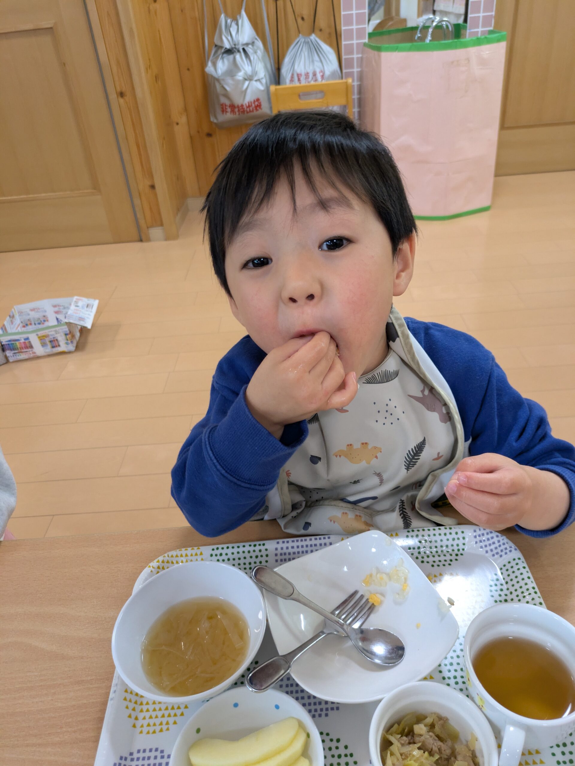 特別な給食やひなあられを食べて、ひな祭り気分を味わった子どもたちでした。