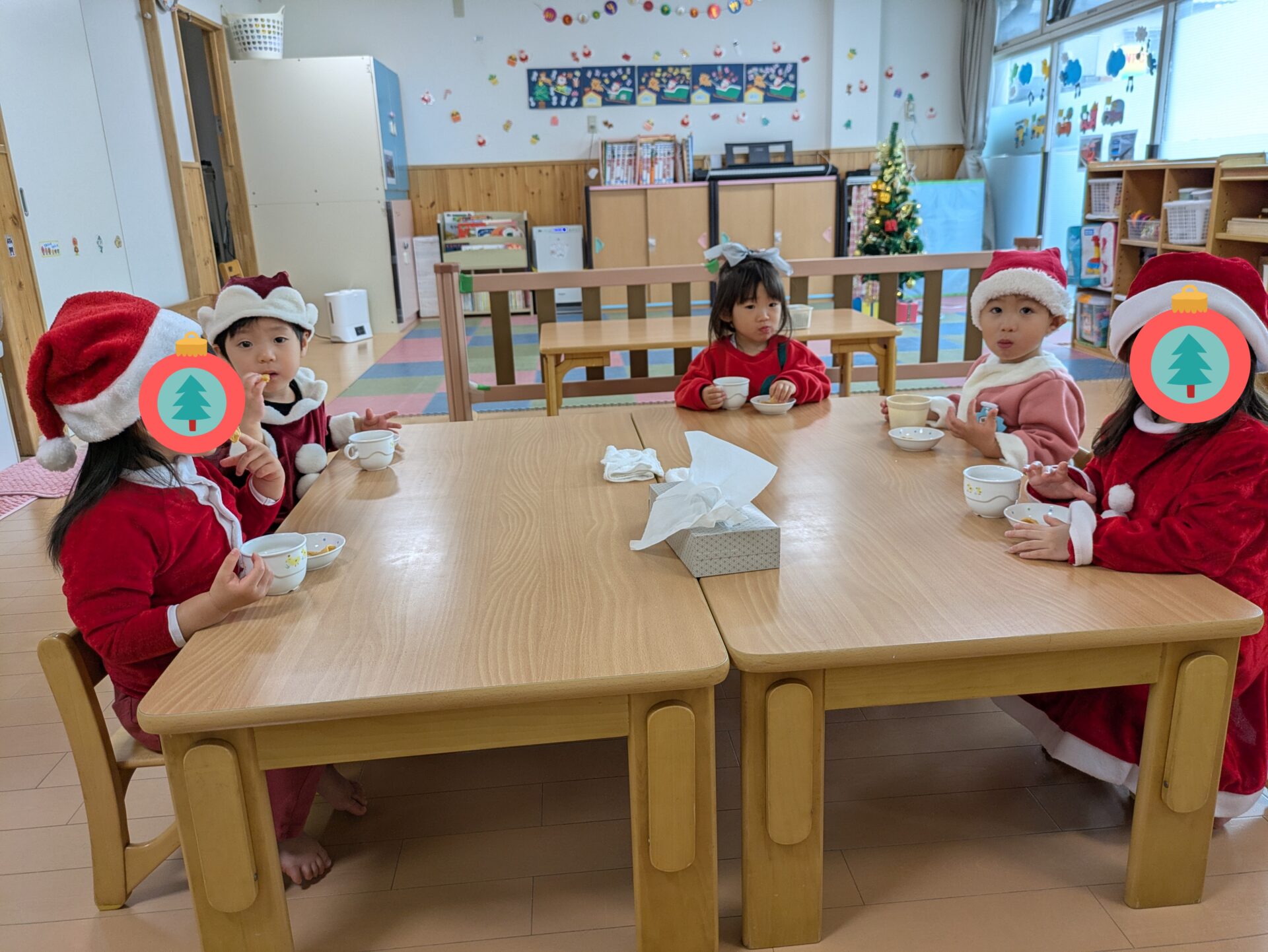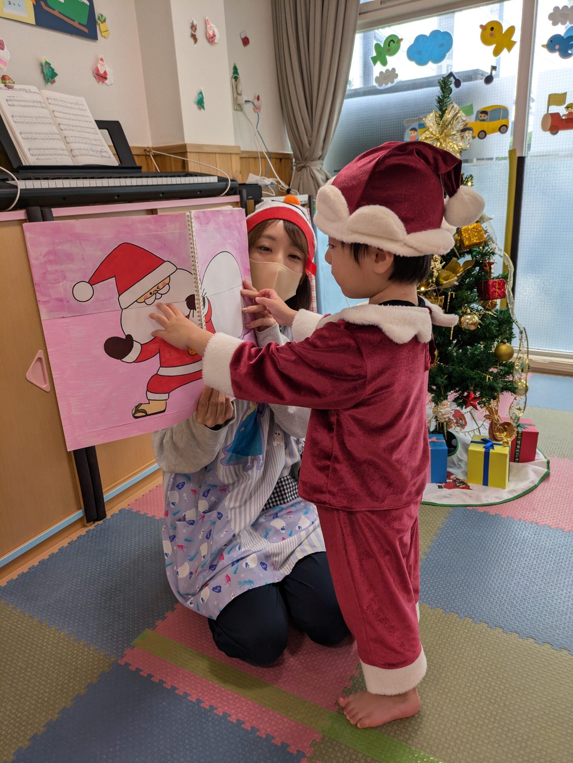 12/25(木)は楽しみにしていたクリスマス!みんな可愛い洋服を着て登園です。