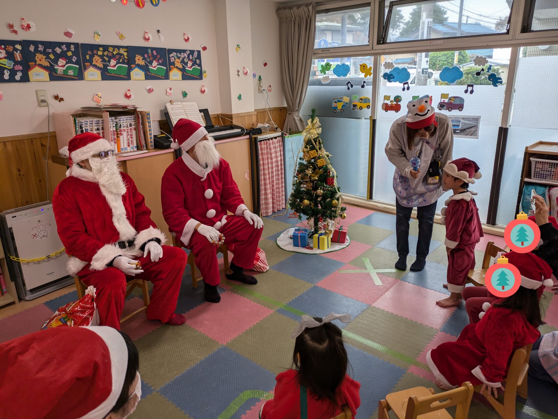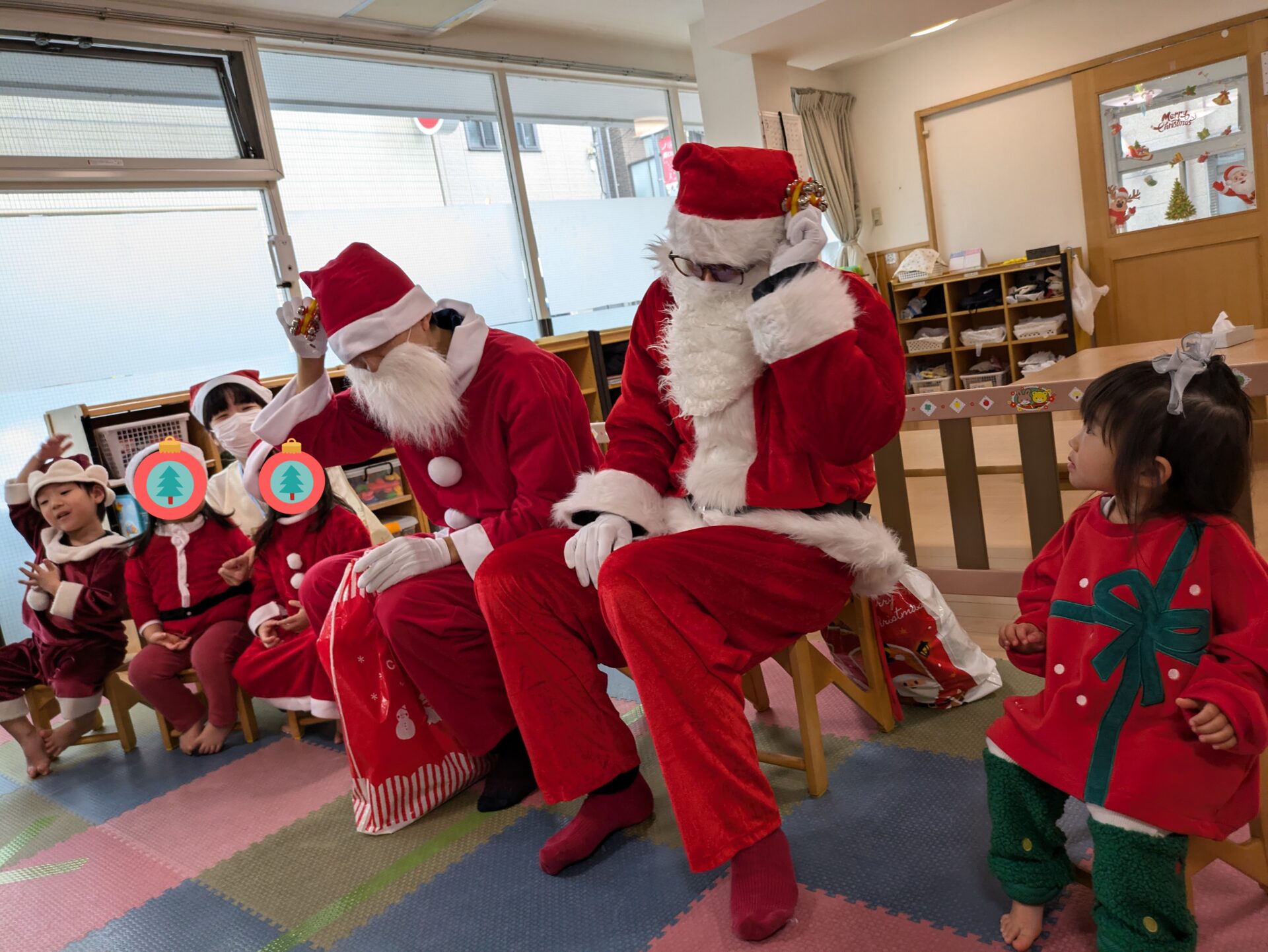クリスマス会の為にお手紙を出したのですが…なんと今年はサンタさんが2人!プレゼントを配る合間をぬって遊びに来てくれました。