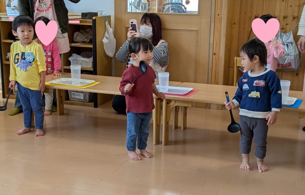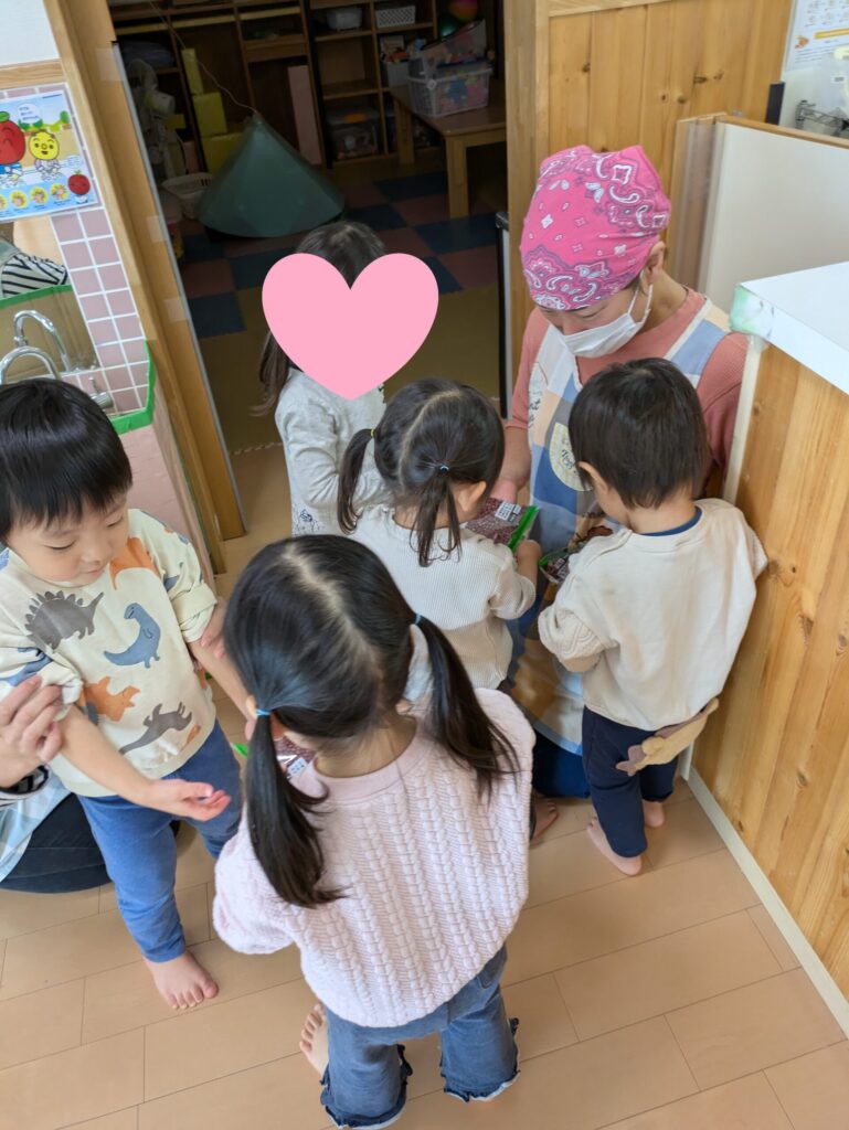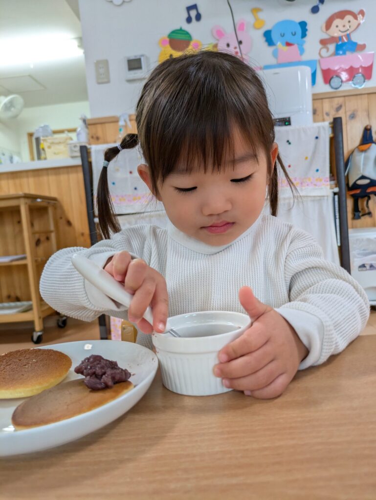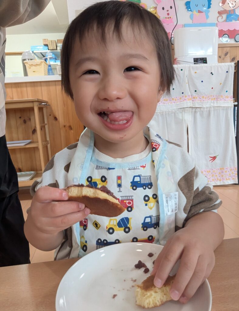ふわぁ~と甘~い良い香りが保育室に広がりました(#^.^#)手作りどら焼きを堪能する子どもたちでした☆