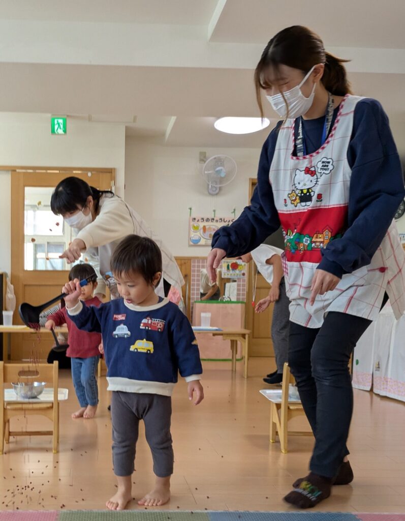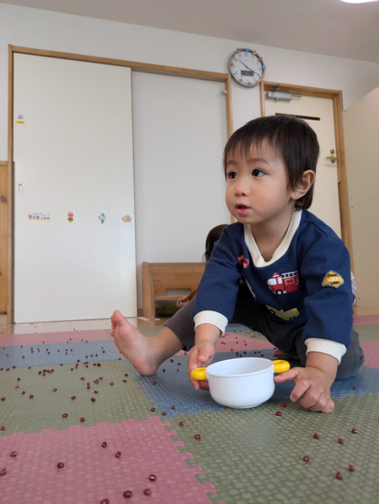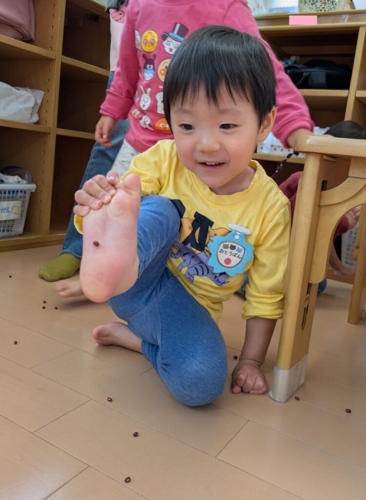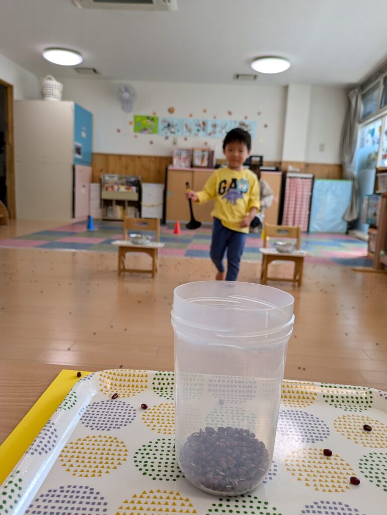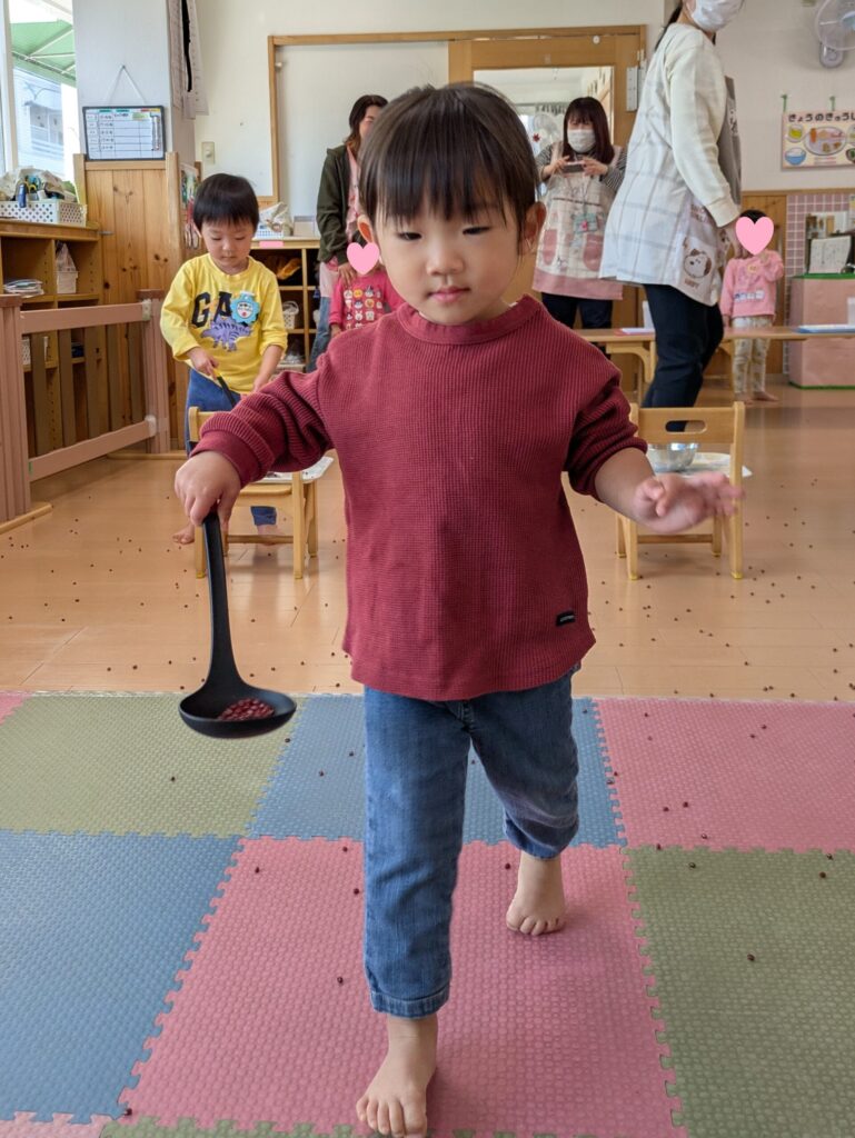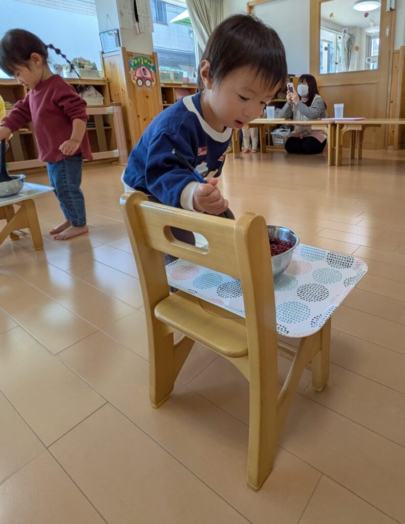 とても盛り上がった楽しい小豆レースになりました♪こぼれた小豆もみんなで一緒に楽しくお片付けをしました!(^^)!