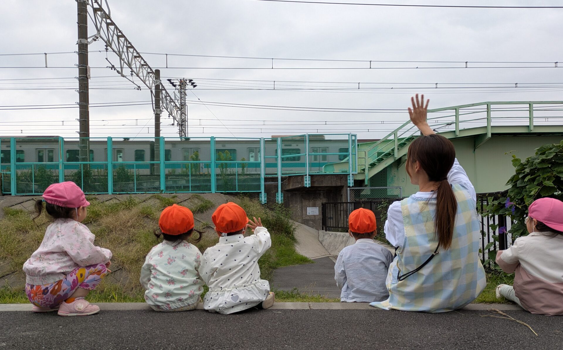 この日は中川の土手へ行き、みんなで電車を眺めてきました♪