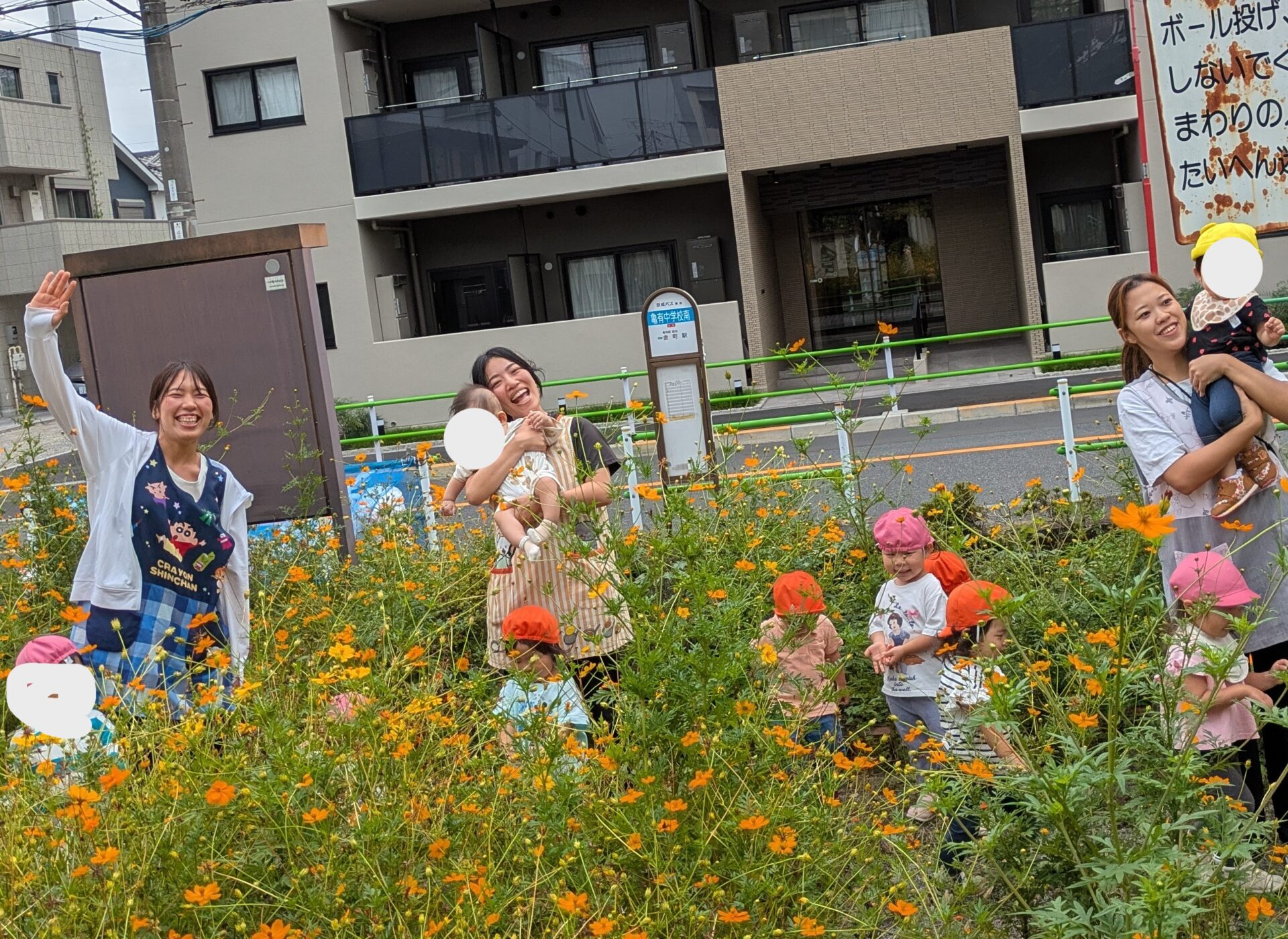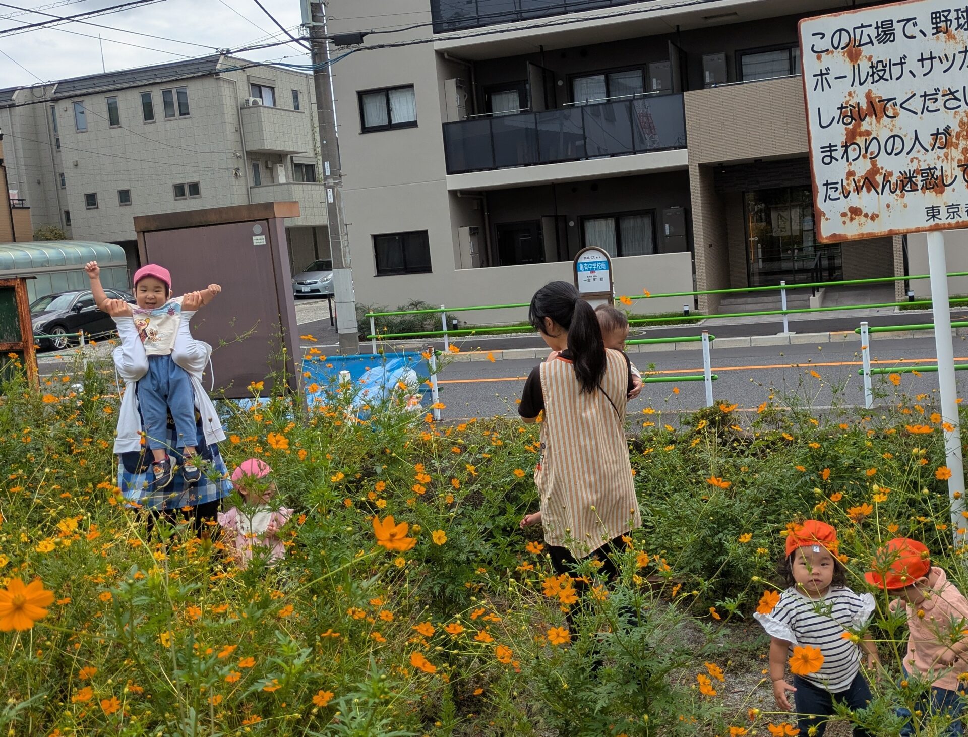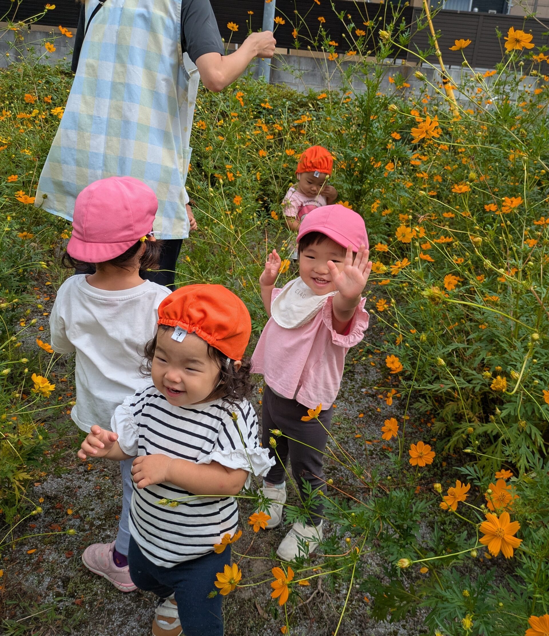 コスモスがたくさん生えている広場に行ったときは、コスモスの迷路に入り込んで遊んでいた子どもたち♪