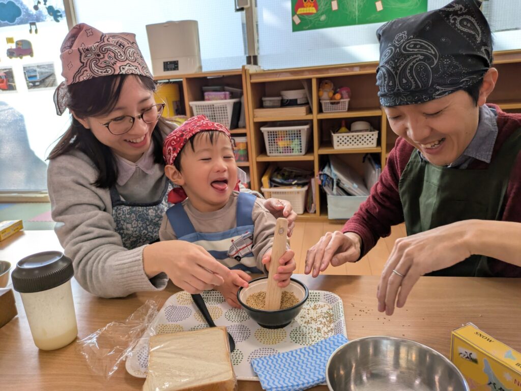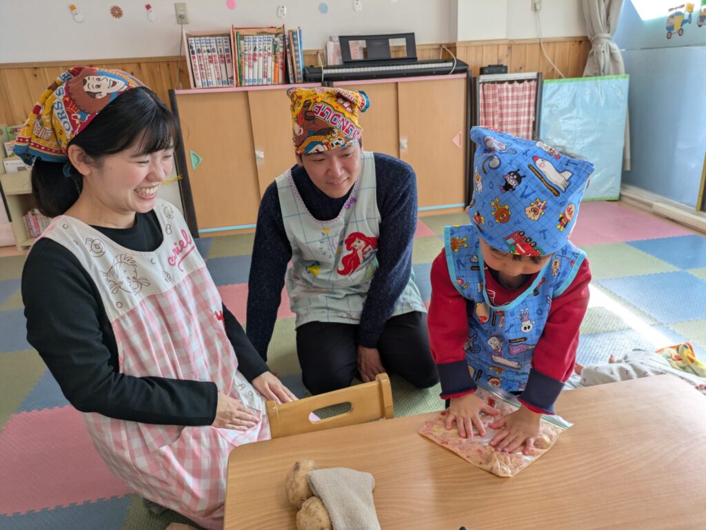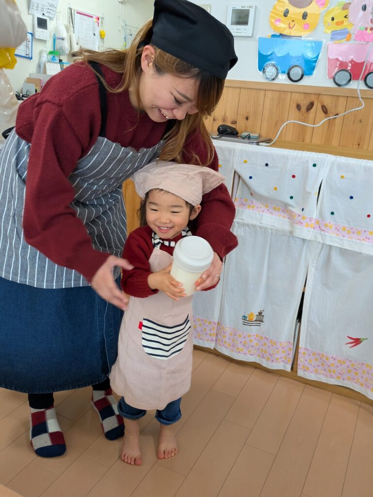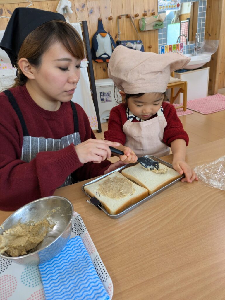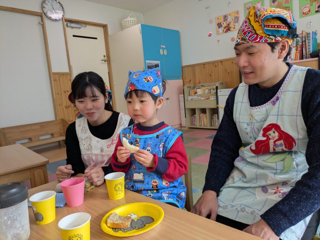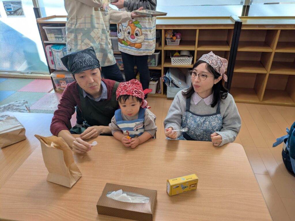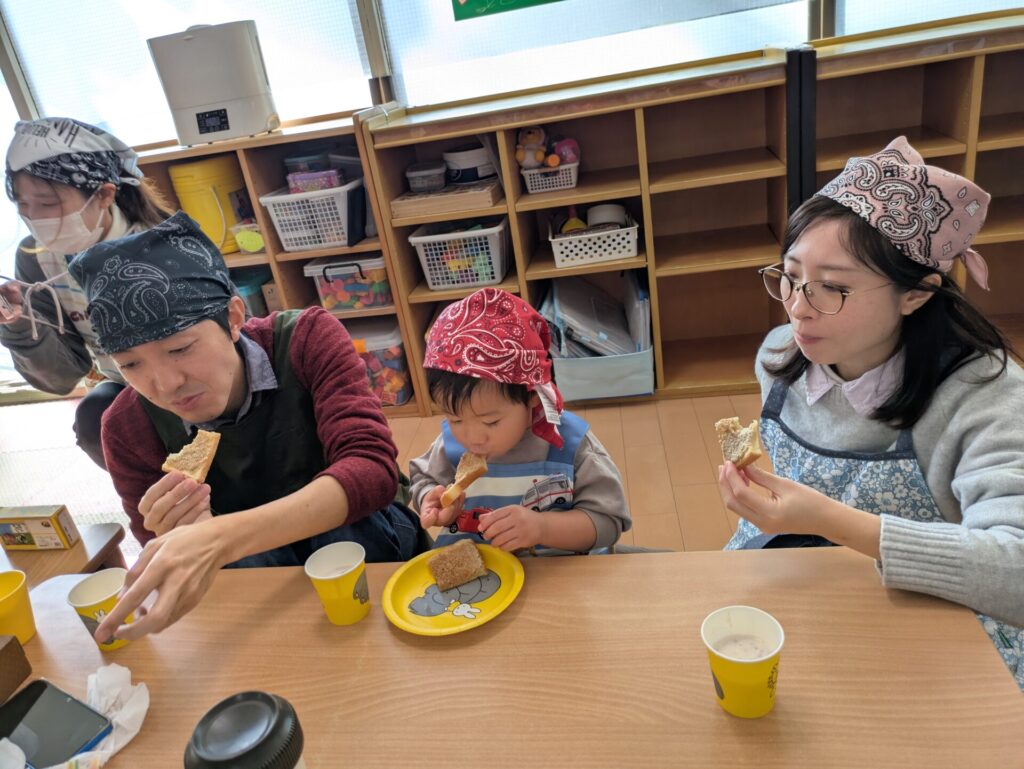 焼きたてのいい香りが保育室に広がり、どのおうちも美味しそうに食べていました。